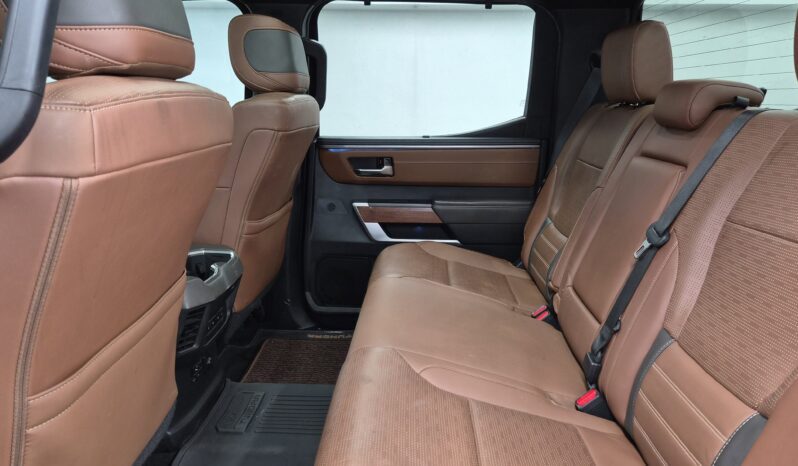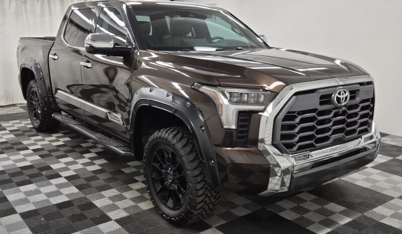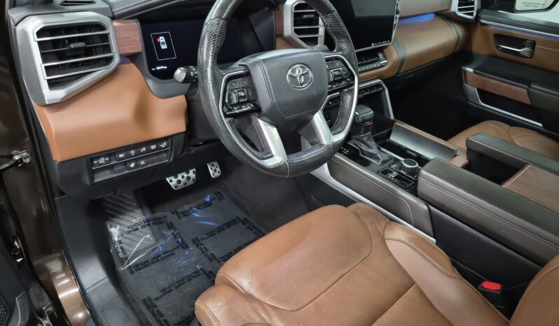 The 2022 Toyota Tundra Platinum offers a powerful mix of performance, comfort, and technology. It stands out with a bold grille, signature LED lighting, and premium 20-inch alloy wheels. Because of its strong presence and refined design, this full-size pickup commands attention wherever it goes.